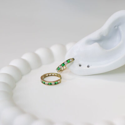 Argolla Huggie Mediana Con Pedrería Oro 10K